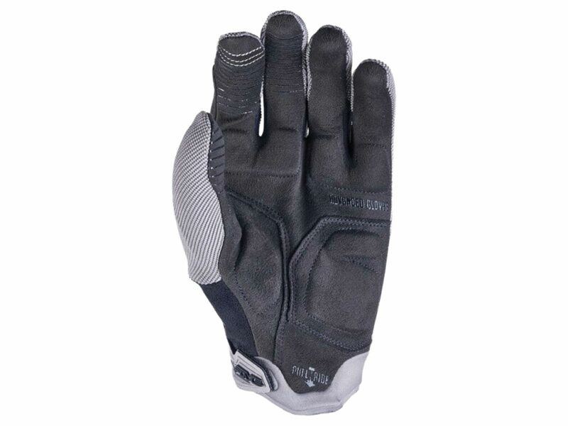 La paume en AX Suede® CINCO est dotée d'impressions en silicone sur l'index, le majeur et le pouce pour assurer un grip optimal sur les leviers de frein. Côté pratique, on retrouve la technologie Touch Screen™ pour l'usage des smartphones et GPS, l'éponge MicroWipe™ pour s'essuyer le front, et une fermeture précise et rapide via une patte en Soft TPR et velcro intégrée au poignet en néoprène, ainsi qu'une Languette de tirage Pull’N’Ride™.