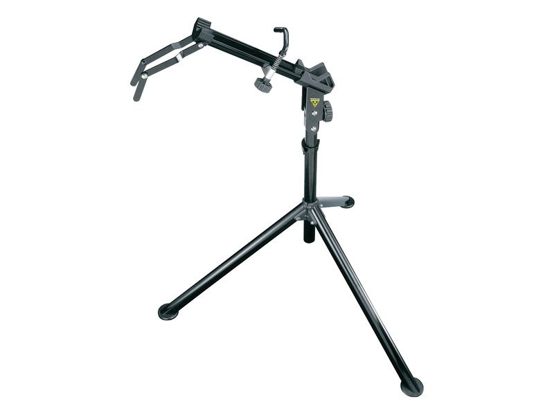 Le pied d'atelier Topeak Prepstand Max supporte un poids jusqu'à 25kg. Il est pliable et facile à transporter avec son poids plume et son encombrement contenu. Le vélo se positionne sur le tube diagonale et est maintenu avec un crochet recouvert de caoutchouc dur pour protéger la peinture du vélo. De plus avec son pied en triangle il offre une bonne stabilité pour travailler efficacement sans soucis de basculement.