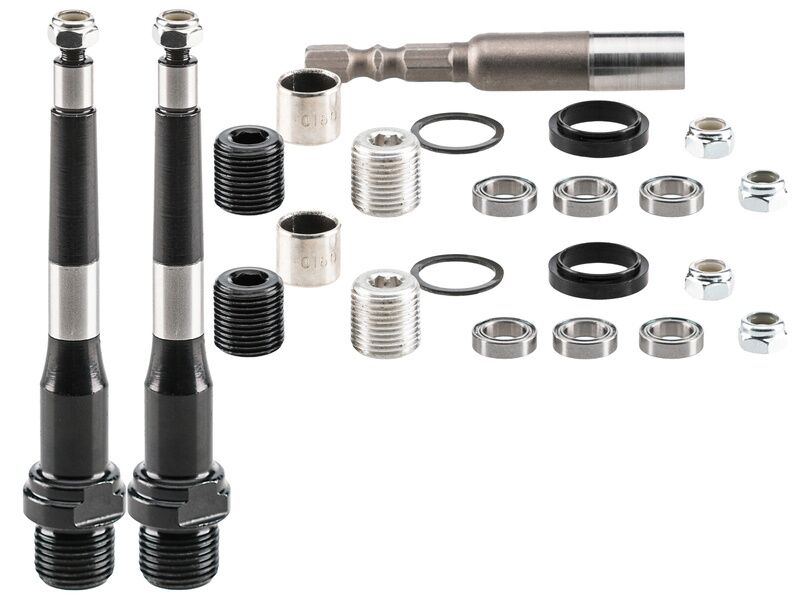 Deity Rebuild Kit for Bladerunner and TMAC Pedals including axles, bearings, bushings, and seals to refurbish your pedals.