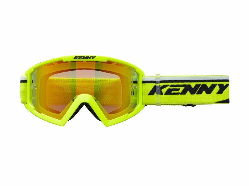 Kenny Track + Goggle Neon Yellow with Red Irridium Lense and supple polyurethane frame with double density foam. The silicone band provide better grip and the AF/AS lense is fully compatible with tear off.